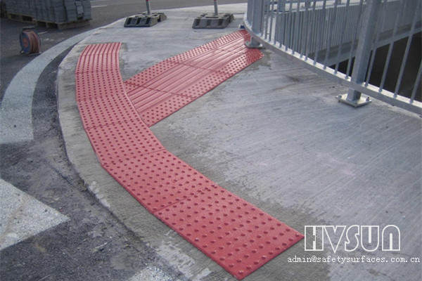 Our HVSUN Rubber Stud Tactiles are to give warning of staircases or hazards. The small dots patterned in a diagonal grid, are to give advanced warning of an obstacle. These tactile tiles have been uniquely developed to make it safer for the blind and partially sighted to mvoe around. Both indoor and outdor can be use.
